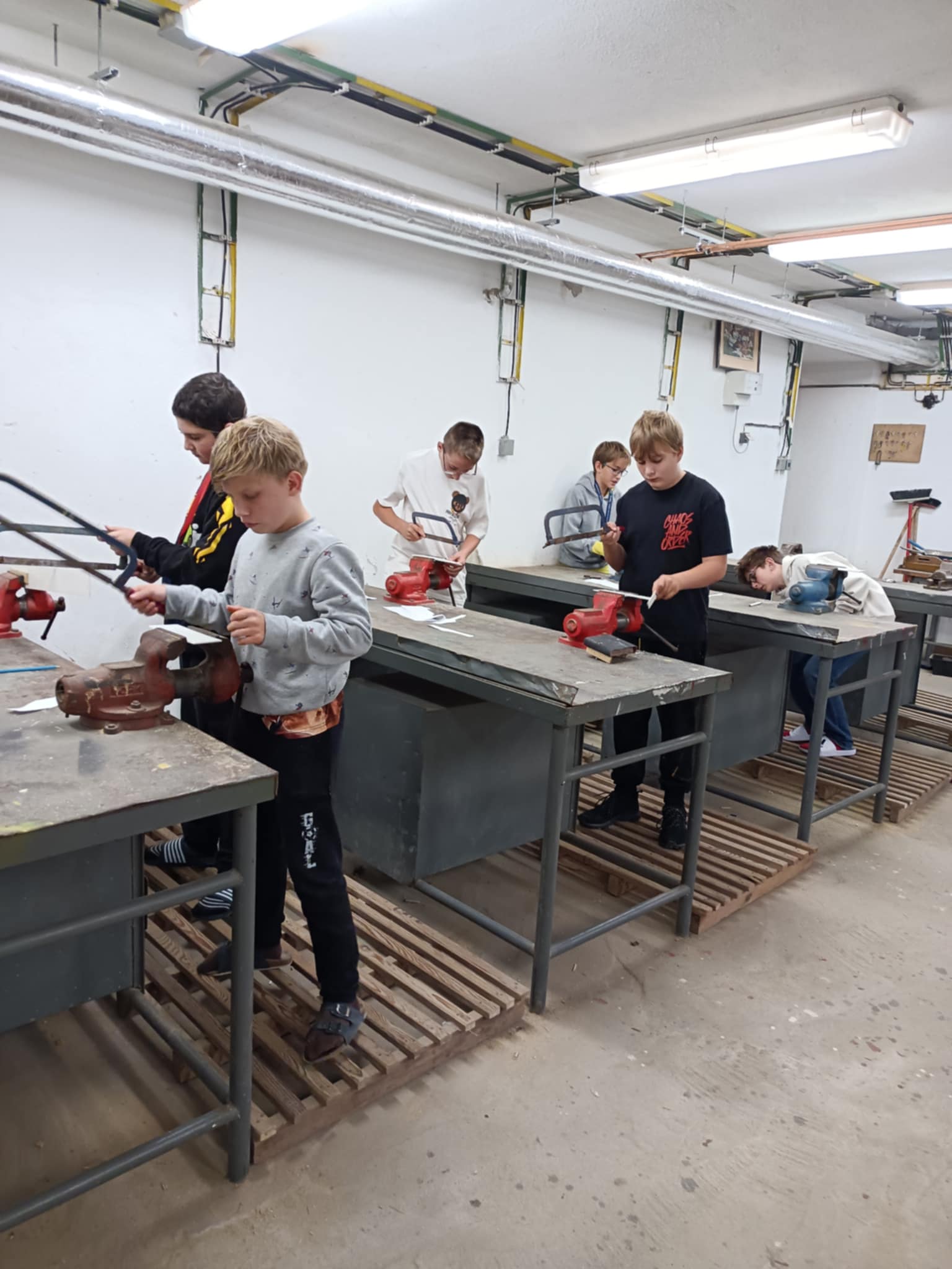 Pohled do dílny 7. ročníku - výroba "lopatek" na dort.