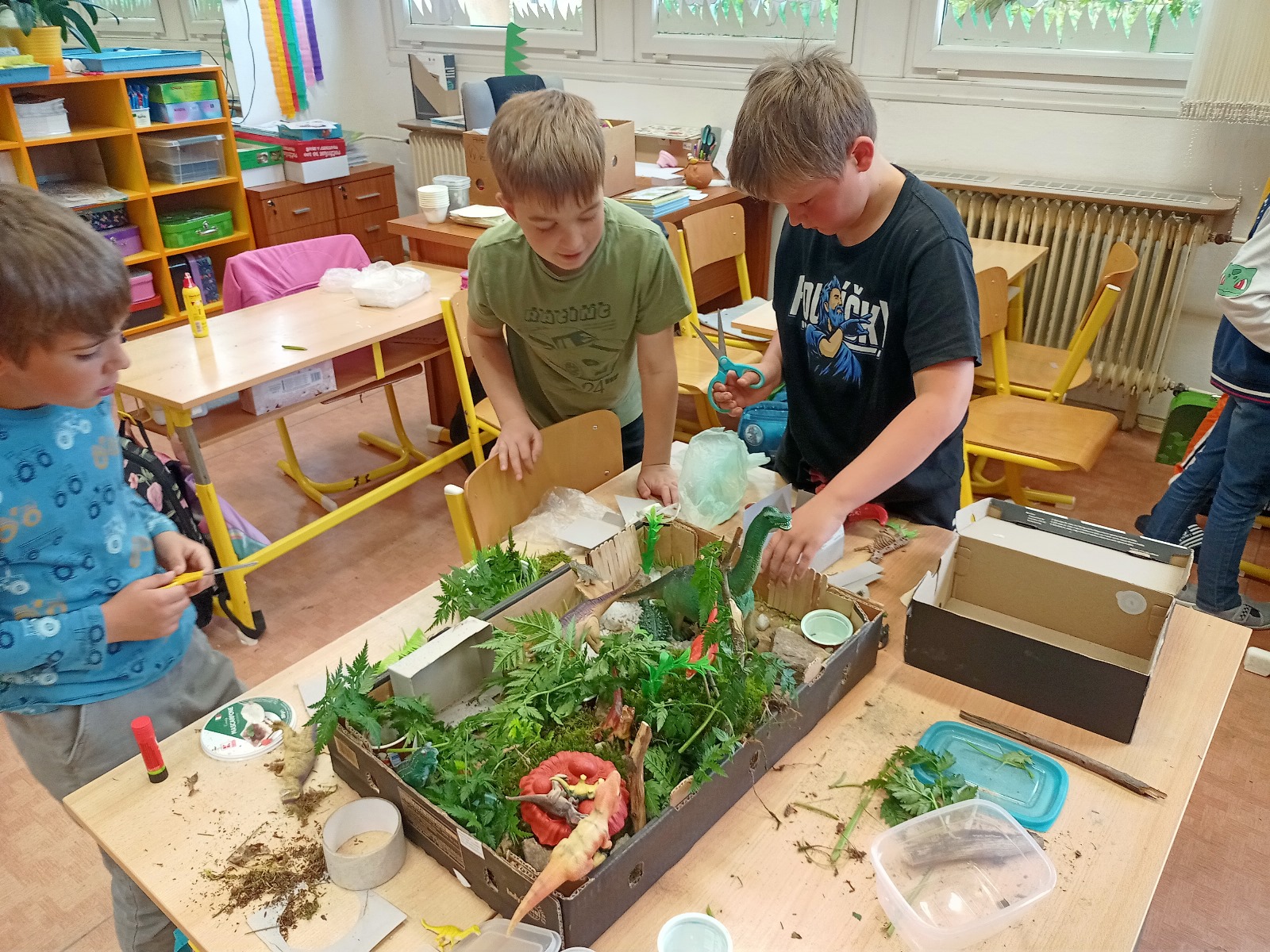 Naši druháčci s velkým zaujetím, bohatou fantazií a skupinovou spoluprací vytvořili z přírodnin a dalších materiálů farmy, ZOO nebo Dinosauří svět podle svých představ.